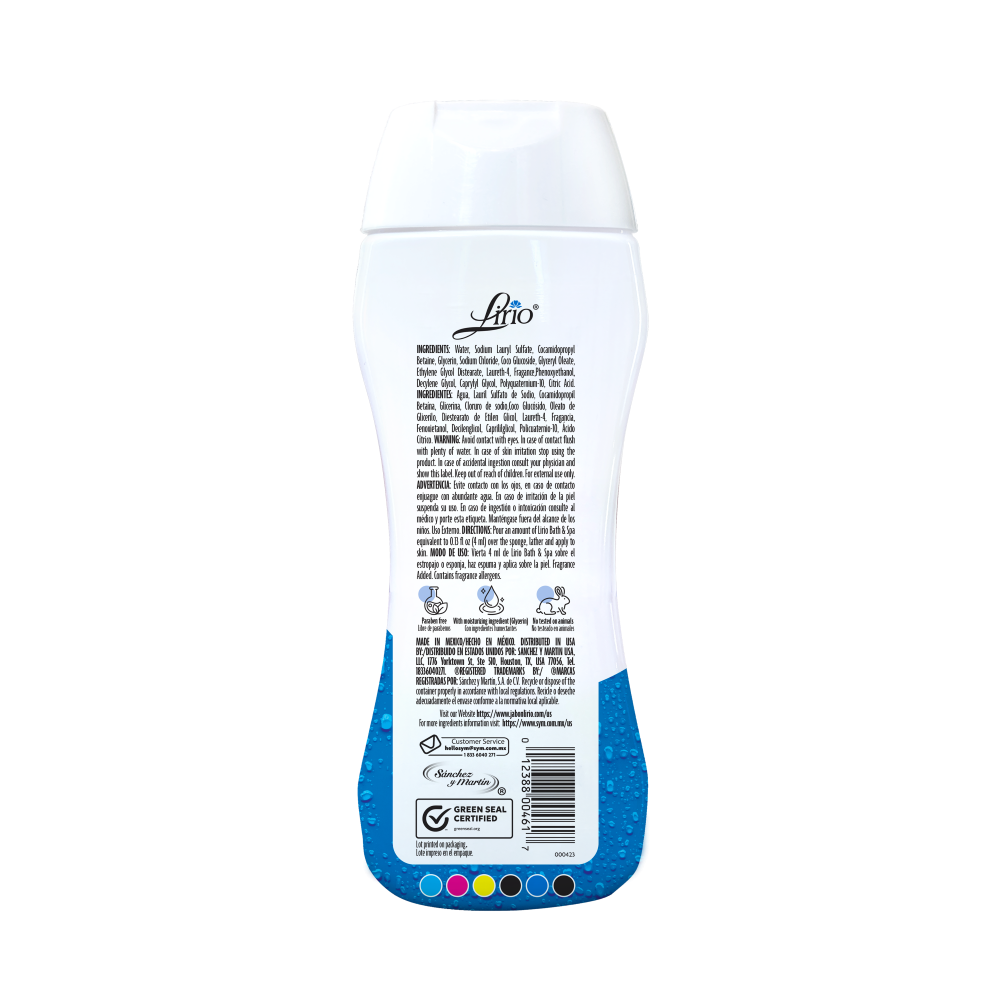- Pour an amount of Lirio Bath & Spa equivalent to 0.13 fl oz (4 ml) over the sponge.